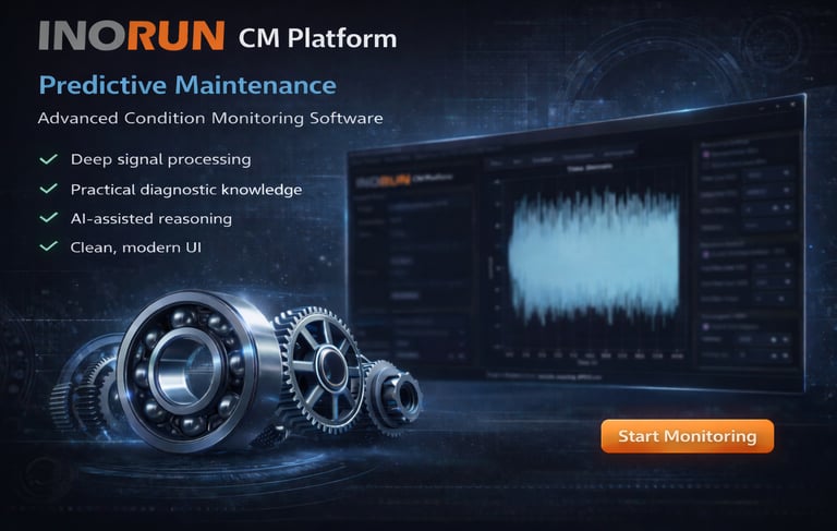Traditional CM tools show plots. INORUN CM Platform explains what they mean. Designed by engineers, for engineers, combining signal processing, domain knowledge, and AI reasoning in one secure desktop application.